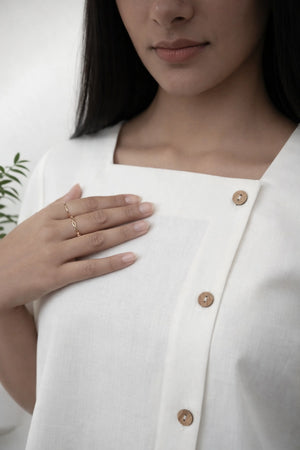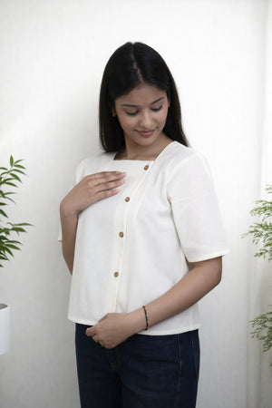 Off White Casual Top with Wooden Button Front
